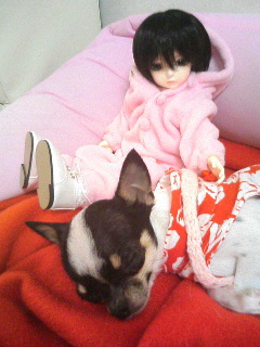 この幼SD用シャツは背中途中までのマジックテープになっているので、着せる時は足から着せるので、全部マジックテープになってる服よりも少々面倒いです(汗)